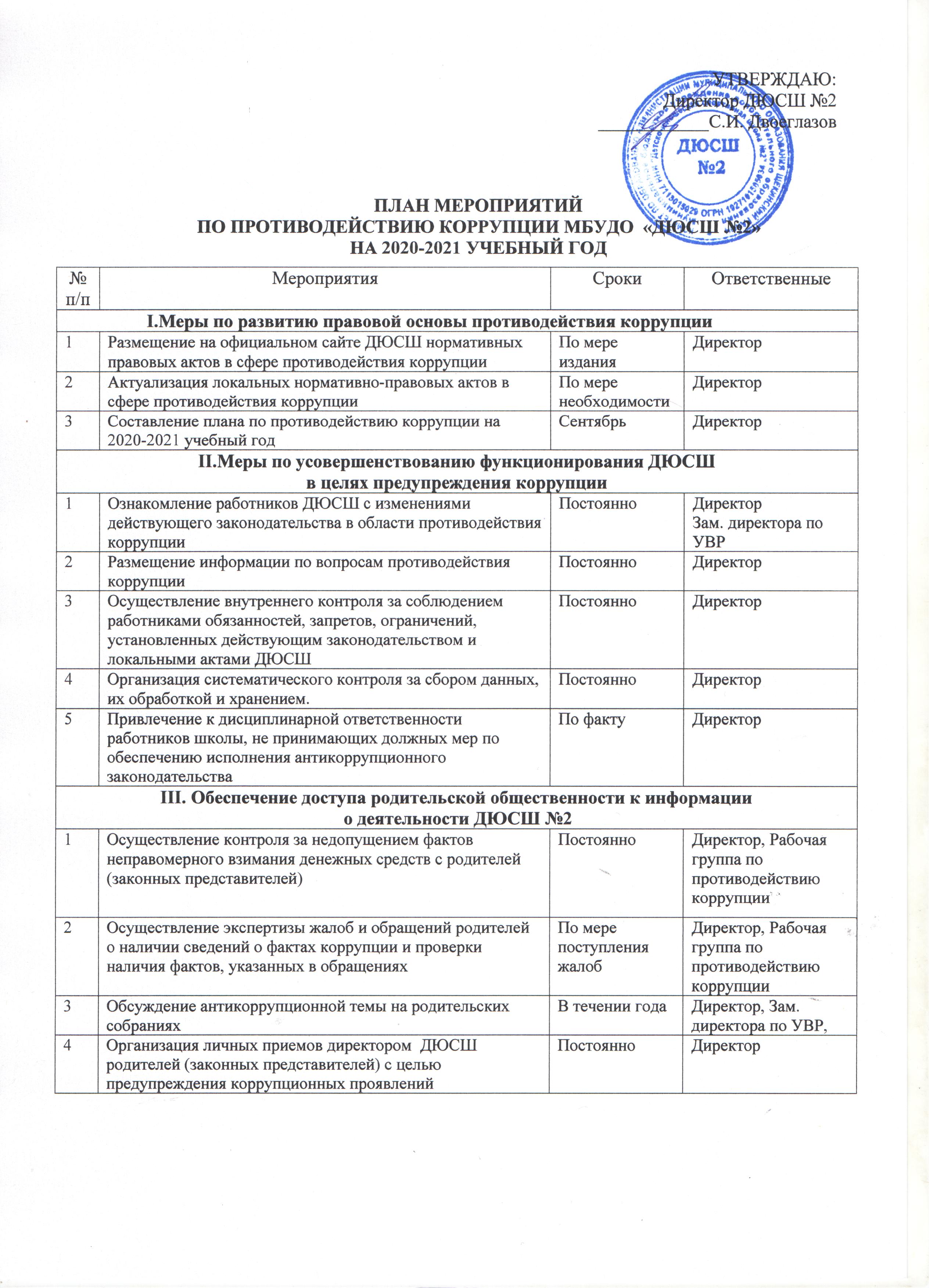 План мероприятий по противодействию коррупции